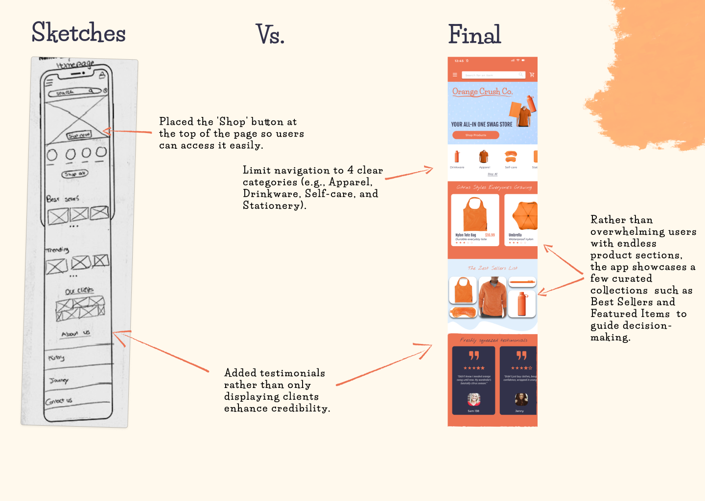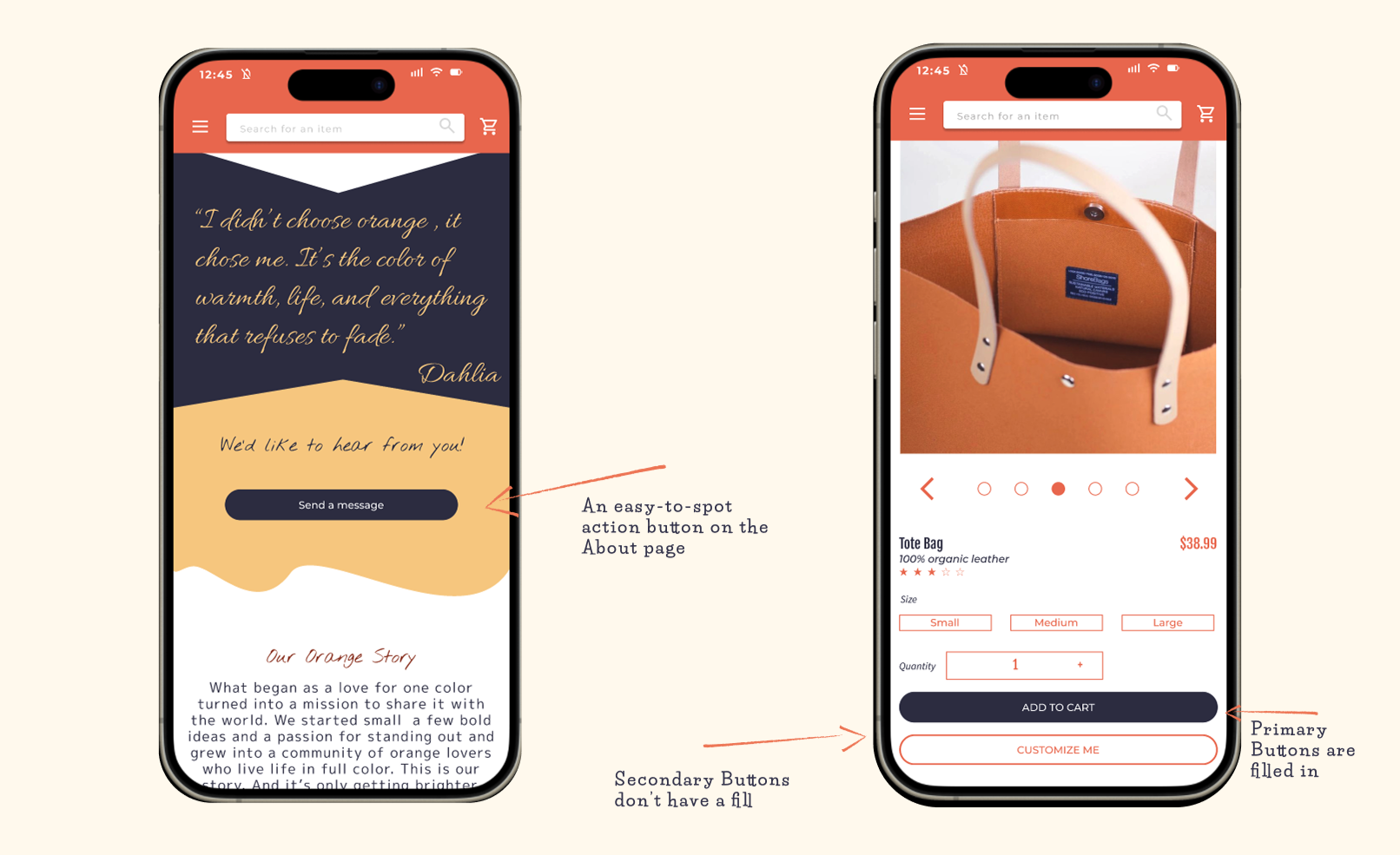 It is a high-visibility color that draws the eye without being too sensitive. Since Orage Crush Co sells orange-themed swag, I wanted that same bold playful vibe to come through in the uer experience.