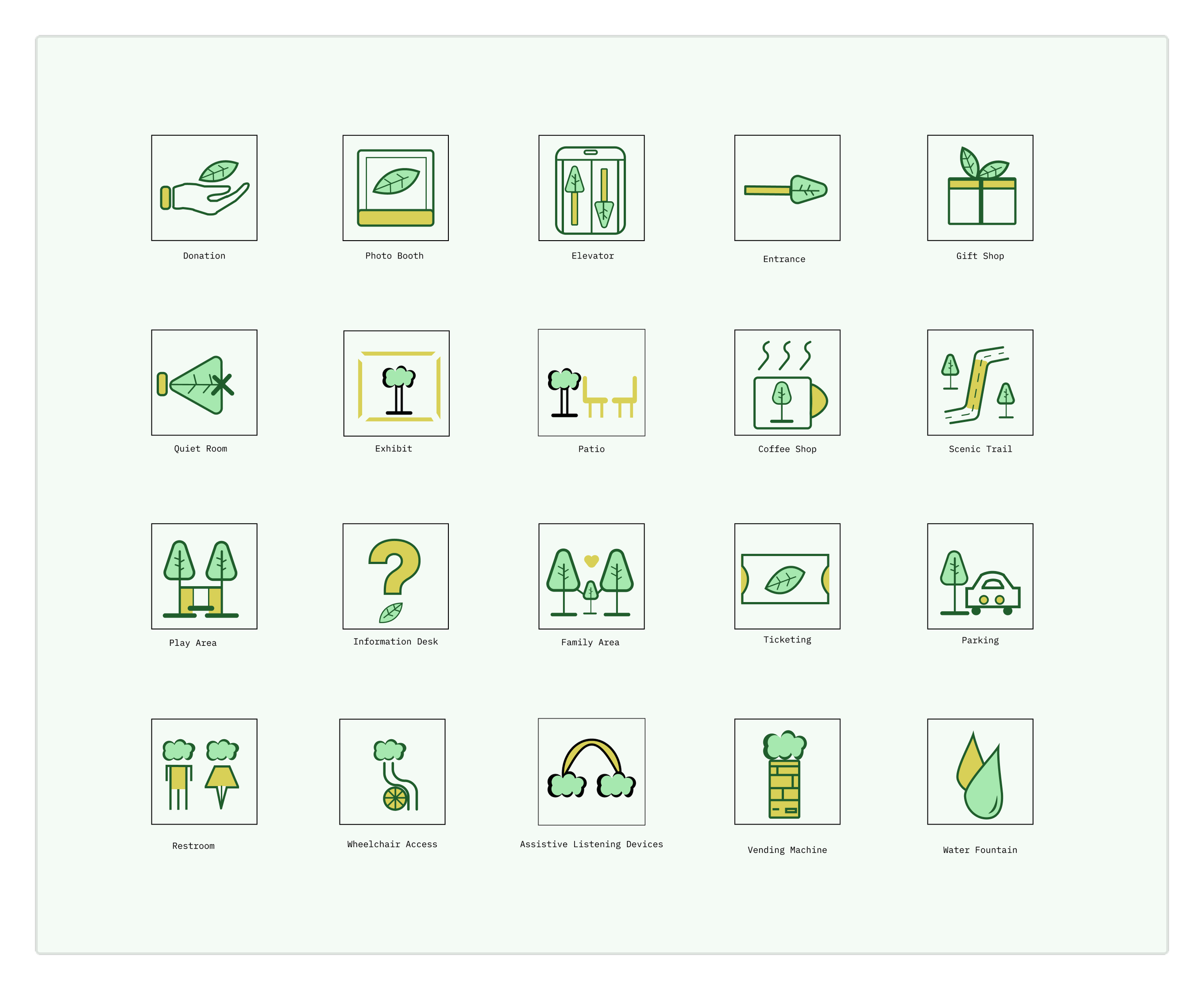 Designing for the Collective: A human-centric icon system for the Tree Museum of Canada. This project focused on creating intuitive visual markers that transcend language barriers and physical ability through high-contrast, simplified forms.